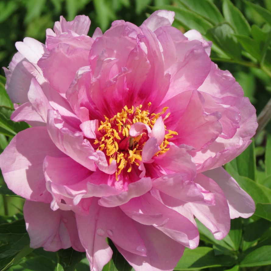 Пион Фест Эрайвал (ИТО) - идеальный пион для сада, очень крупные полумахровые цветки интенсивного лавандового цвета с более тёмными тонами у центра лепестков, по мере цветения, цвет слегка выгорает до бледно-розового цвета. С возрастом куста в целом, махровость цветков увеличивается. Цветки располагаются непосредственно над шикарной листвой, прочные крепкие стебли не нуждаются в опоре. Куст округлый. Высота куста: 80 см. Ширина куста: 60 см. Очень привлекательный сорт. Зацветает в июне.